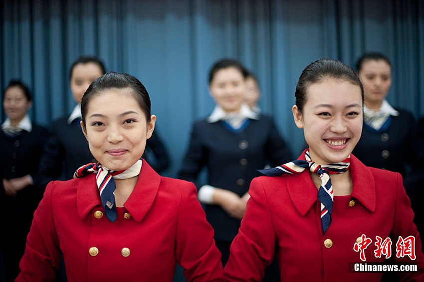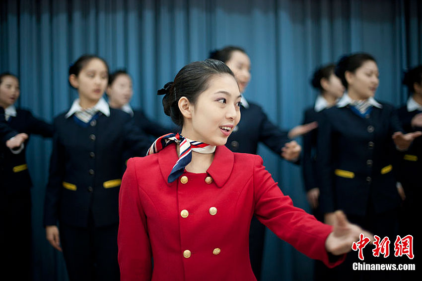 再過(guò)兩周,北京地區(qū)將較全國(guó)提前10天開始進(jìn)入春運(yùn)階段。為迎接春運(yùn),北京地區(qū)加開了至重慶、成都等地的動(dòng)車組。24日,新一批動(dòng)車組乘務(wù)員在石家莊接受完封閉培訓(xùn),將在春運(yùn)前走上崗位?崴瓶战愕膭(dòng)車組女乘務(wù)員,一顰一笑皆有規(guī)矩,給旅客帶來(lái)良好感覺(jué)的背后,是艱苦的訓(xùn)練。張沫 攝 圖片來(lái)源:CFP視覺(jué)中國(guó)