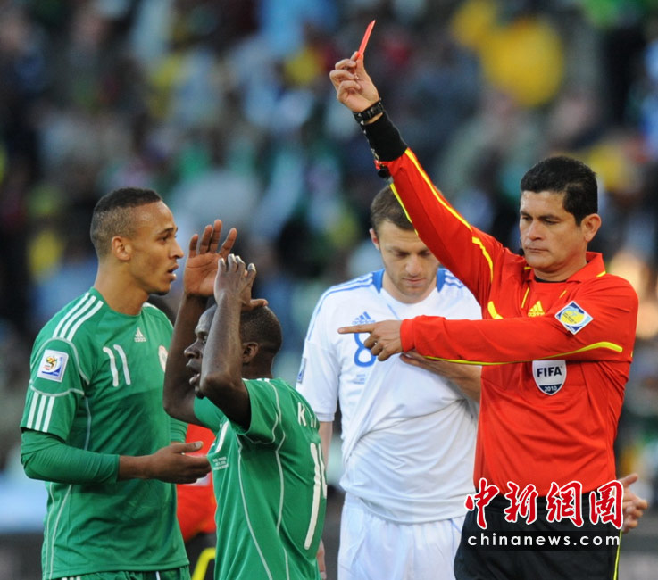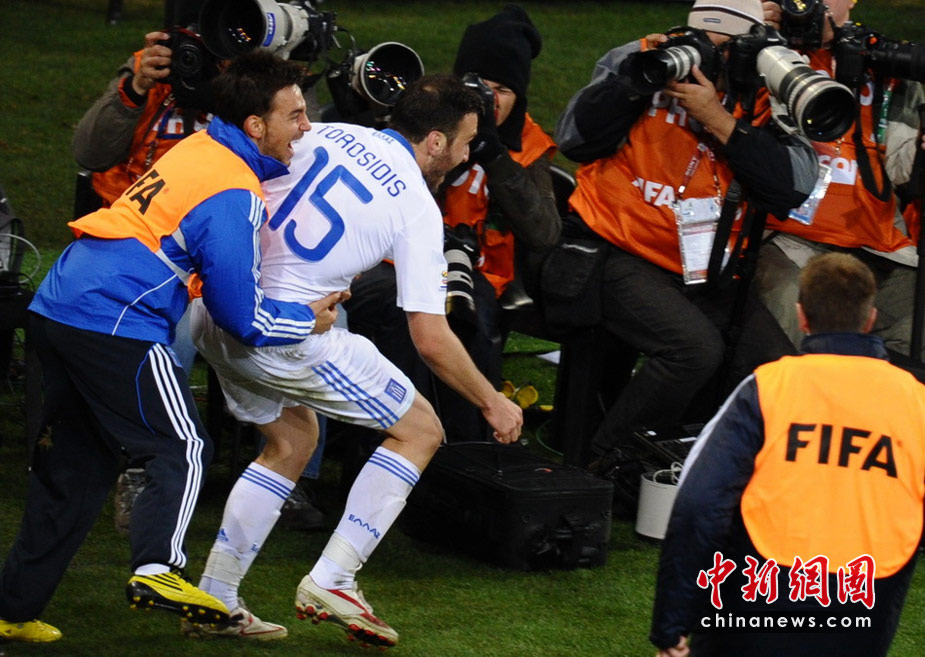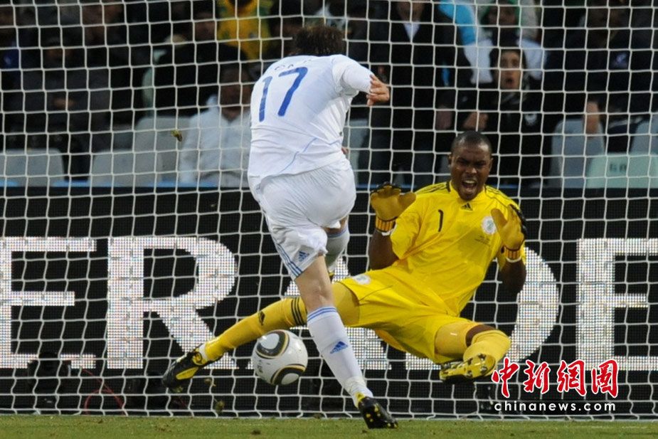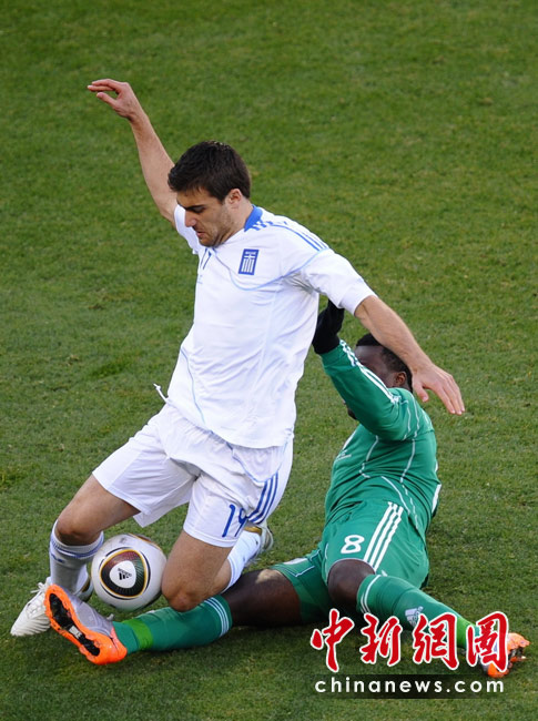 6月17日,南非世界杯B組第二輪比賽打響,由歐洲勁旅希臘在布隆方丹的自由洲球場迎戰(zhàn)非洲雄鷹尼日利亞。上班時(shí)尼日利亞任意球率先破門,但此后被紅牌罰下一人,希臘隊(duì)隨即抓住機(jī)會,在上下半場各入一球,以2-1逆轉(zhuǎn)擊敗尼日利亞隊(duì)。