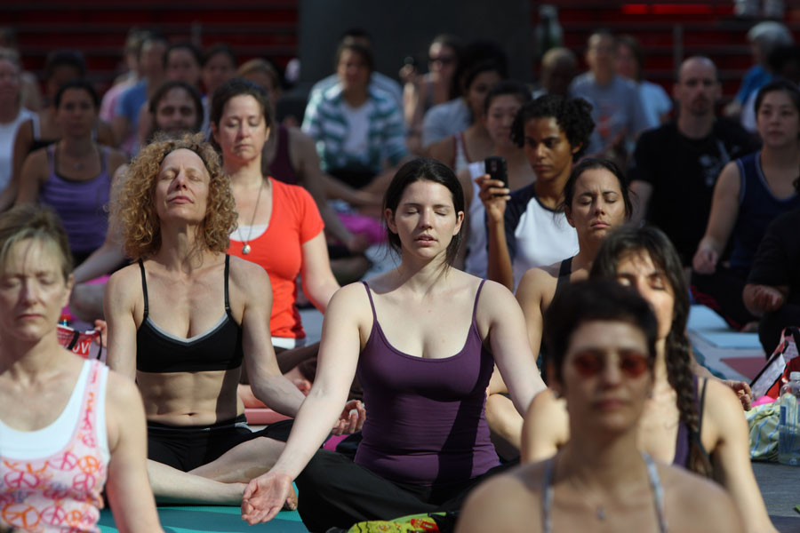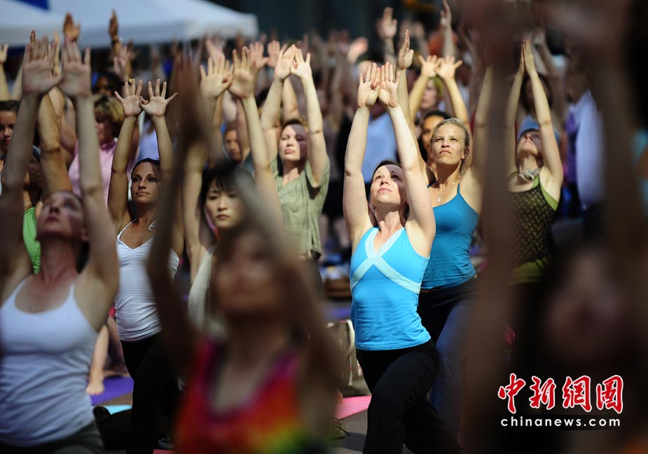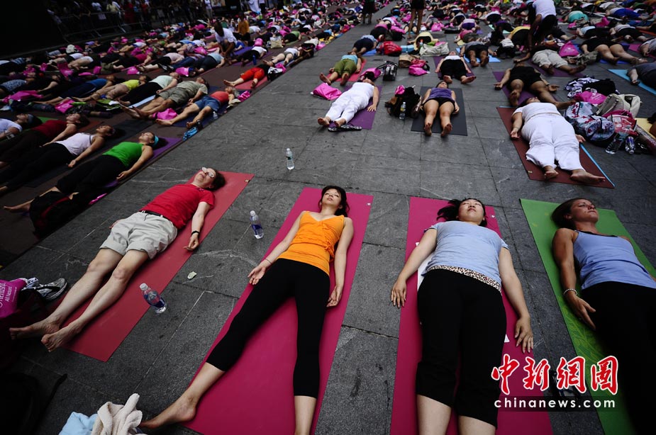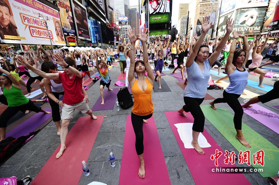 數(shù)千人紐約時(shí)報(bào)廣場(chǎng)做瑜伽迎接夏至