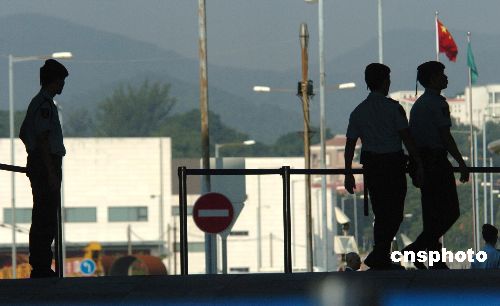 十一月五日,澳門前運(yùn)輸工務(wù)司司長歐文龍涉嫌嚴(yán)重受賄案在終審法院開審,法院外三步一崗,五步一哨,戒備森嚴(yán)。被控七十六項罪名的歐文龍首度出庭應(yīng)訊,預(yù)計聆訊超過一個月。這是澳門回歸八年來首宗直接由終審法院主理的刑事案,被喻為“世紀(jì)巨貪案”。中新社發(fā) 史利 攝