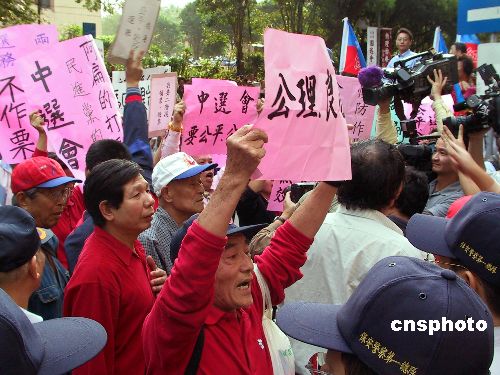 臺灣“中選會”委員會議十一月十六日晚表決確定,明年“立委”選舉合并兩項“公投”舉行,將采“分桌領(lǐng)票、一階段投、圈票方式”進(jìn)行,投錯票匭選票屬有效票。圖為當(dāng)天下午臺灣民眾到“中選會”所在辦公大樓下表達(dá)訴求,希望選舉能公平公正進(jìn)行。據(jù)了解,在“中選會”的一項意見調(diào)查中,臺灣二十五縣市選委會當(dāng)中的多數(shù)支持“二階段領(lǐng)、投票”模式。中新社發(fā) 劉舒凌 攝