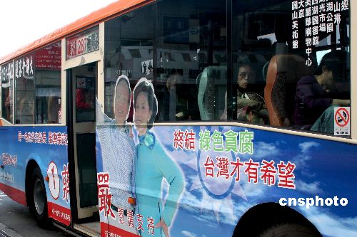 圖為臺(tái)北市一輛公交車上刊登的“立委”候選人廣告。