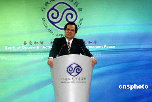 圖:陳明通主持臺(tái)灣“陸委會(huì)”新春記者會(huì)