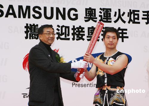 一月二十六日,北京奧運(yùn)會圣火傳遞的全球合作伙伴三星電子在香港時代廣場舉行發(fā)布活動,揭曉香港及澳門的公眾、名人及運(yùn)動員組奧運(yùn)火炬手名單。中新社發(fā) 武仲林 攝