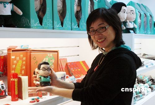 3月10日,有臺(tái)北“長(zhǎng)仔工坊”業(yè)者展示此次民進(jìn)黨候選人謝長(zhǎng)廷、蘇貞昌的創(chuàng)意公仔商品。業(yè)者稱(chēng),此番展示的商品,有T恤、手表、文具、飾品、鉛筆、杯墊、鑰匙圈、隨手杯、手機(jī)吊飾等,用創(chuàng)意設(shè)計(jì)手法,呈現(xiàn)謝、蘇的特質(zhì)、形象,展現(xiàn)臺(tái)灣的選舉文化。中新社發(fā) 黃少華 攝