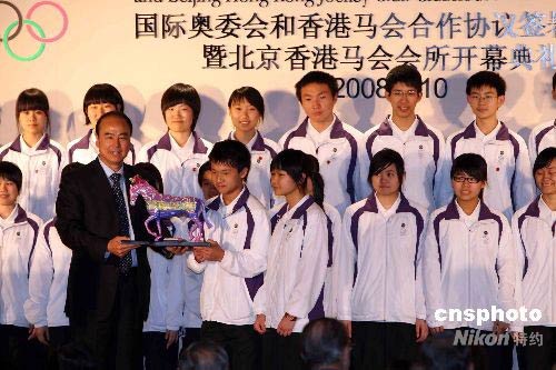 4月10日,香港馬會在北京與國際奧委會博物館簽訂《合作協(xié)議》,為未來成立“香港奧林匹克博物館”,攜手在港進一步宣傳奧運理念、傳播體育精神打下合作的基礎(chǔ)。 雙方同時還簽署了一份《貢獻機構(gòu)協(xié)議》。根據(jù)該協(xié)議,馬會將向國際奧委會博物館進行捐贈以支持并宣揚奧林匹克運動。圖為在儀式上香港學生向北京奧組委贈送禮物。中新社發(fā) 任海霞 攝