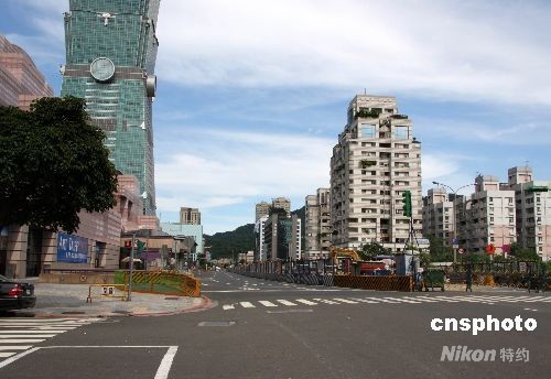 8月28日下午二時(shí)半至三時(shí),臺北市舉行“萬安演習(xí)”,車輛行人凈空。圖為原本車輛和行人繁忙的世貿(mào)中心大街一帶道路上空無一人。中新社發(fā) 陳立宇 攝