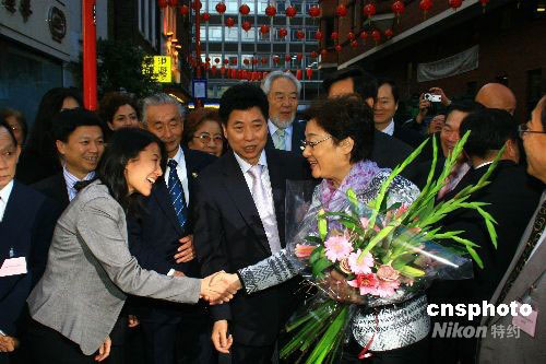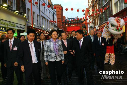 當(dāng)?shù)貢r(shí)間9月12日傍晚,中國國務(wù)院僑辦主任李海峰一行在倫敦唐人街參觀訪問,在華人僑領(lǐng)的陪同下參觀唐人街。中新社發(fā) 李鵬 攝