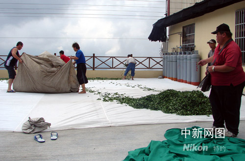 九月十二日“森拉克”臺風即將來臨,臺灣阿里山上的茶農(nóng)搶時間晾曬高山茶。曾福志 攝