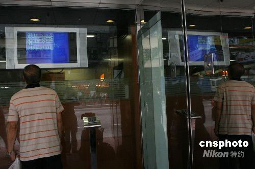 九月十六日,受美國雷曼兄弟破產(chǎn)、美股大跌影響,香港恒生指數(shù)重挫,開市跌逾千點(diǎn)。圖為香港股民關(guān)注股市及時(shí)行情。中新社發(fā) 武仲林 攝
