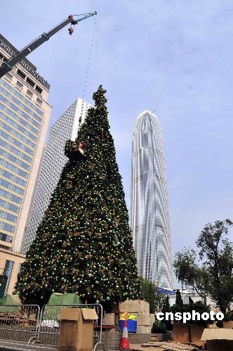 十一月十九日,香港工人正在港島中環(huán)地區(qū)裝巨型圣誕樹(shù)。香港特區(qū)旅發(fā)局今年覓得置地公司贊助,在皇后像廣場(chǎng)再亮起高三十米的圣誕樹(shù),為香港繽紛冬日營(yíng)造更好的節(jié)日氣氛。中新社發(fā) 譚達(dá)明 攝