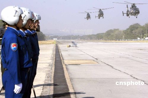 上午九時(shí)五十五分,由六架直九-B型直升機(jī)組成的空軍編隊(duì),降落在駐軍石崗機(jī)場(chǎng),接替即將輪換出港的空軍直升機(jī)編隊(duì)。