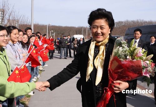 當(dāng)?shù)貢r間4月13日,率領(lǐng)代表團正在美國訪問的國務(wù)委員劉延?xùn)|,來到紐約州立大學(xué)石溪分校參加一系列活動,并看望了接受獎學(xué)金正在紐約州立大學(xué)學(xué)習(xí)的150名四川地震災(zāi)區(qū)大學(xué)生代表。圖為劉延?xùn)|到達石溪分校時,受到學(xué)生們的熱烈歡迎。中新社發(fā) 魏晞 攝