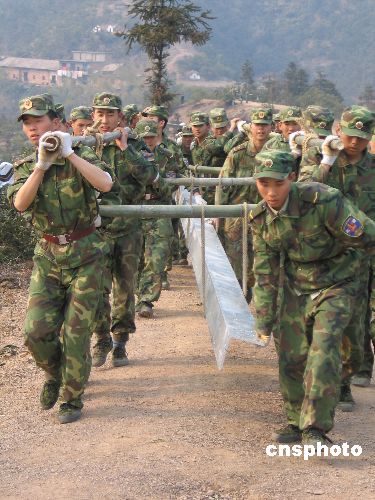 圖:南京某部官兵為江西宜春雜木坑搶修電力