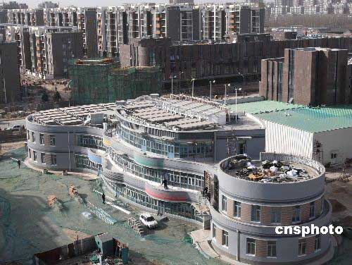2月28日,北京眾多媒體參觀國奧村居住區(qū)。北京國奧村居住區(qū)內(nèi)的微能耗建筑幼兒園應(yīng)用太陽能采暖、太陽能熱水、太陽能光伏發(fā)電、風(fēng)力發(fā)電、智能化控制等22余項(xiàng)高新技術(shù)。中新社發(fā) 趙振清 攝