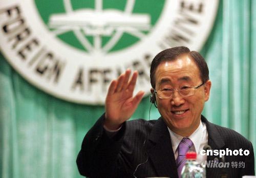 7月1日下午,聯(lián)合國秘書長潘基文抵達(dá)北京,開始對中國進(jìn)行為期3天的正式訪問。圖為潘基文在外交學(xué)院發(fā)表演講。中新社發(fā) 張宇 攝