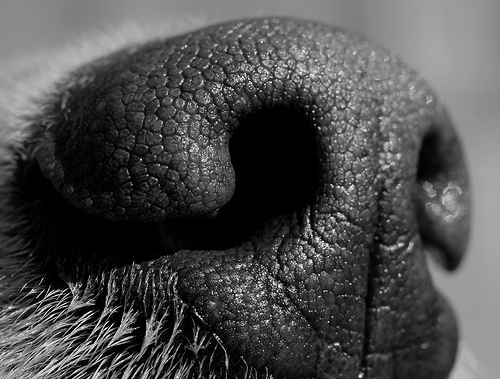 據(jù)測量,人類的嗅覺細(xì)胞有500萬個(gè),而狗的嗅覺細(xì)胞則有2億多個(gè),是人類的40倍,可以分辨大約2萬種氣味,經(jīng)過特殊訓(xùn)練的狗,可以分辨出犯罪分子攜帶的可卡因,甚至可以分辨出癌癥的氣味。人們研究的焦點(diǎn)始終聚集在狗的嗅覺器官如何捕捉氣味,無人關(guān)注狗鼻子上的粘液。傳統(tǒng)的觀點(diǎn)認(rèn)為,狗的鼻子保持濕潤是身體健康的一種表現(xiàn),但是現(xiàn)在科學(xué)家發(fā)現(xiàn)狗鼻子上的粘液層還有助于它們辨別氣味。
