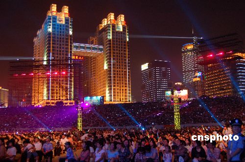 十月二十八日,第四屆中國(guó)—東盟博覽會(huì)開(kāi)幕,當(dāng)晚博覽會(huì)開(kāi)幕式晚會(huì)暨南寧國(guó)際民歌藝術(shù)節(jié)在民歌廣場(chǎng)開(kāi)幕,民歌廣場(chǎng)和周圍高樓燈光璀璨,夜景十分迷人。中新社發(fā) 劉萬(wàn)強(qiáng) 攝
