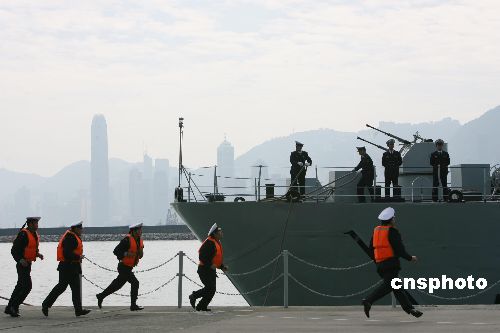 圖為輪換進(jìn)港的艦艇駛抵昂船洲軍營。