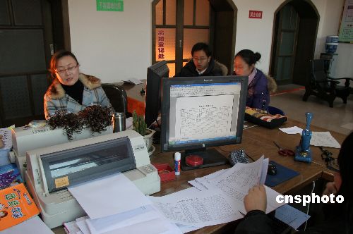 12月29日,山西陽城縣民政局婚姻登記所工作人員在為準(zhǔn)備新年結(jié)婚的青年登記忙碌。據(jù)陽城縣婚姻登記所工作人員介紹,2007年12月份結(jié)婚登記的青年不少,最多時(shí)一天有27對(duì)青年登記。中新社發(fā) 馬宏泰 攝
