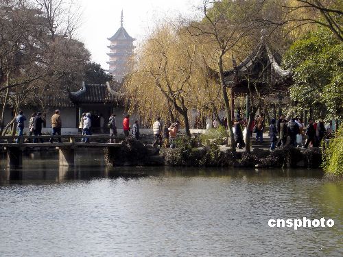 12月30日,游客在蘇州古典園林拙政園游覽。當(dāng)日是2008年元旦“小長(zhǎng)假”第一天,盡管蘇州天氣寒冷,但姑蘇園林內(nèi)人氣依然火爆。中新社發(fā) 王建康 攝