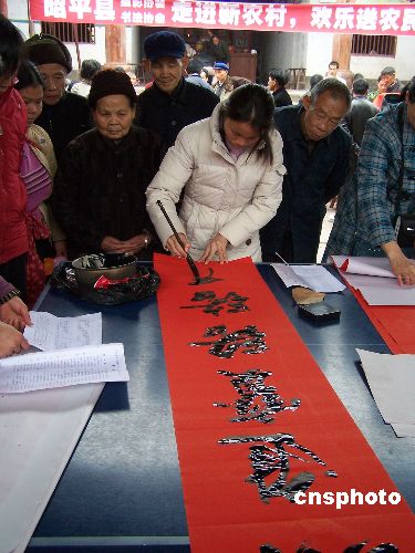 圖:廣西昭平書法家為瑤胞送新年祝福