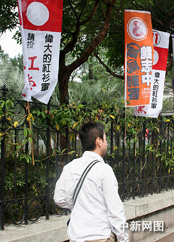 一月十日,距臺灣第七屆“立委”選舉只有兩天。雖然單一選區(qū)兩票制的新制對小黨很不利。但小黨也是不甘示弱的。你大黨在街頭插旗搞文宣,我紅黨雖小也要插旗。作者:陳立宇