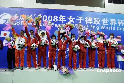 圖:中國(guó)隊(duì)獲2008年女子摔跤世界杯冠軍