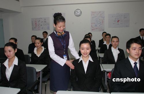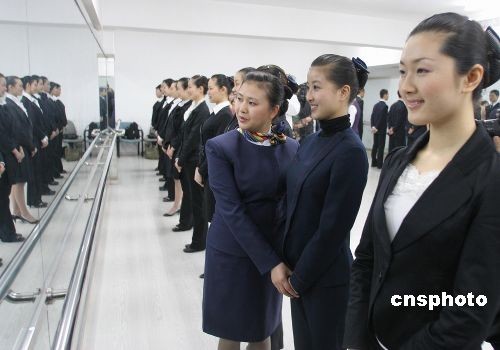 3月18日,國航從“奧運空乘”成都賽區(qū)選拔出的首批34名優(yōu)秀學員,集中在國航西南分公司成都乘務(wù)員培訓中心開始接受近三個月的乘務(wù)員初始培訓,培訓成績優(yōu)異者將投入國航奧運航線客艙服務(wù)。這批學員包括12名男學員、22名女學員,清一色為大專以上學歷,其中14人達到本科學歷,為乘務(wù)培訓中心接收的學歷最高的一批乘務(wù)學員。中新社發(fā) 易世忠 攝