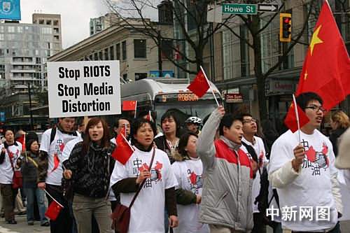當(dāng)?shù)貢r(shí)間29日下午,加拿大溫哥華部分中國(guó)留學(xué)生和華人代表組織集會(huì)活動(dòng),現(xiàn)場(chǎng)播放錄像揭露部分西方媒體對(duì)西藏事件的不公正報(bào)道。 中新社記者呂振亞攝