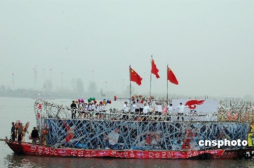 圖:江蘇姜堰“鳥(niǎo)巢”貢船水上迎奧運(yùn)(2)