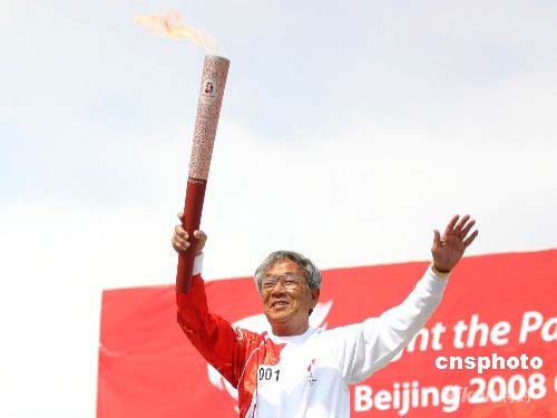 4月28日上午10時許,北京奧運圣火在朝鮮首都平壤開始傳遞。北京奧運圣火在平壤的傳遞,從主題思想塔出發(fā),途徑中朝友誼塔、千里馬雕像、凱旋門等主要景點,最終在金日成體育場舉行慶典儀式。圖為第一棒火炬手樸斗翼高舉火炬。 中新社發(fā) 沈晨 攝