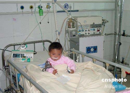 4月29日,阜陽(yáng)市第二人民醫(yī)院,一4歲女患兒在重癥監(jiān)護(hù)病房接受恢復(fù)性治療。中新社發(fā) 張婭子 攝