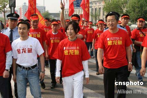 4月30日,北京奧運(yùn)會(huì)迎來開幕倒計(jì)時(shí)100天,天津迎奧運(yùn)萬人健步走活動(dòng)啟動(dòng)。2000年悉尼奧運(yùn)會(huì)競走冠軍王麗萍(中)與萬余名天津市民一起,步行4.5公里,宣傳奧運(yùn),祝福奧運(yùn)。 中新社發(fā) 田齊 攝