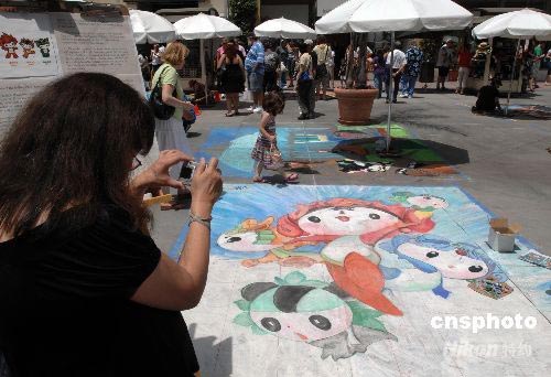 帕薩迪納粉筆畫藝術(shù)節(jié) 《福娃》吸引美國觀眾