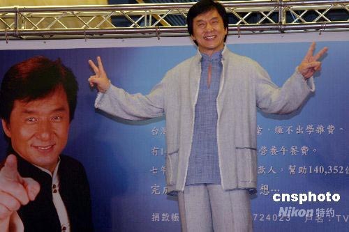 時隔四年之久,知名藝人成龍六月十八日再度造訪臺灣。身為臺灣女婿的他表示,“近鄉(xiāng)情怯,此行是專程為臺灣貧苦孩子募款而來”。中新社發(fā) 許曉青 攝