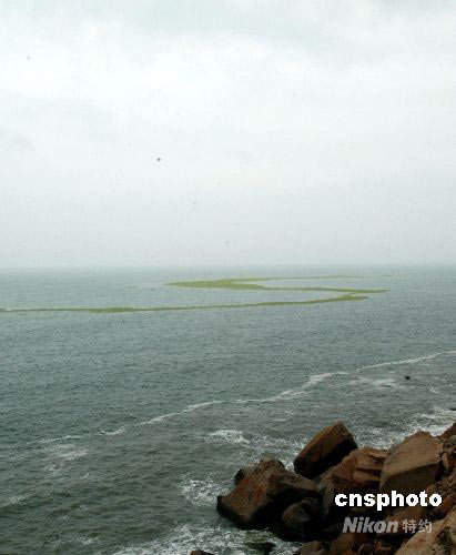 受南方強(qiáng)降雨及氣候變化的影響,近日二00八北京奧運(yùn)會帆船賽舉辦地青島近海海域涌現(xiàn)大面積海藻并侵入岸邊,青島市海洋漁業(yè)局組織有關(guān)部門及時進(jìn)行清潔打撈,以保障各國運(yùn)動員的訓(xùn)練不受影響,F(xiàn)在每天有四百多艘漁船一千三百余人參與出海打撈,預(yù)計(jì)隨南方降雨量減少及氣候改變,青島海域海藻將消失。中新社發(fā) 曲連遵 攝