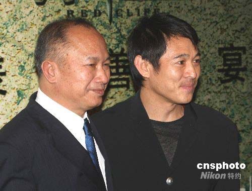 7月1日晚,電影《赤壁》劇組和瑞士某品牌名表在北京舉辦慈善晚宴,將募集的100萬元人民幣善款捐贈中國紅十字會李連杰壹基金計劃,用于四川地震災(zāi)后重建。導(dǎo)演吳宇森(左)和李連杰出席慈善晚宴。中新社發(fā) 趙振清 攝