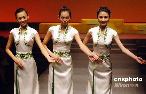 圖為志愿者展示“玉脂白”系列頒獎(jiǎng)服。中新社發(fā) 王東明 攝