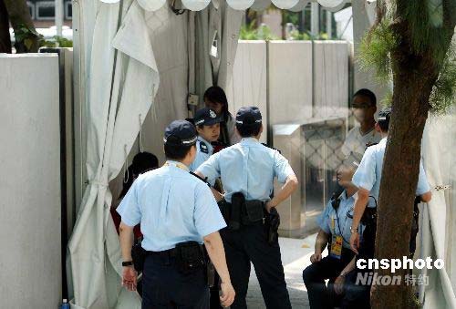 七月二十六日,參加奧運(yùn)馬術(shù)比賽的首批馬匹運(yùn)抵香港沙田賽場(chǎng),警方高度重視保安情況,沙田賽場(chǎng)各入口處戒備森嚴(yán)。當(dāng)日,奧運(yùn)馬術(shù)公司強(qiáng)調(diào),將跟香港警方、國(guó)際奧委會(huì)和北京奧組委等保持密切聯(lián)系;若警方提升風(fēng)險(xiǎn)評(píng)估級(jí)別,馬術(shù)公司也會(huì)作出相應(yīng)調(diào)整和配合。中新社發(fā) 洪少葵 攝
