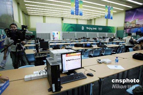 七月二十六日,位于沙田奧運(yùn)馬術(shù)比賽主賽場的新聞媒體中心啟用,設(shè)備齊全的場館提供新聞發(fā)布、無線網(wǎng)絡(luò)通訊、賽程成績公布等,方便各路媒體工作。中新社發(fā) 洪少葵 攝