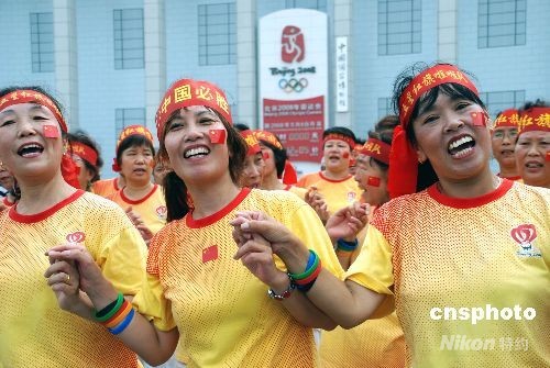 圖:北京群眾拉拉隊(duì)天安門為奧運(yùn)加油(2)