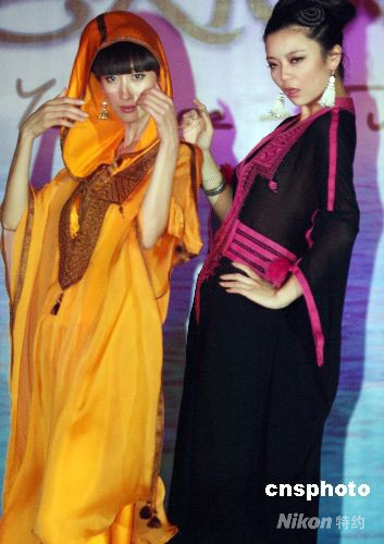 8月10日,第29屆奧運會在北京舉行之際,“突尼斯旅游文化周”在北京舉行,來自“突尼斯的藝術(shù)家、音樂家、舞蹈家、烹飪大師、商業(yè)代表以及政府代表組成的代表團,以音樂節(jié)、美食節(jié)、商務(wù)研討會等多種形式,為中國及各國各界的賓客呈現(xiàn)一個全方位、全視角、多層次、豐富多彩的突尼斯新形象。圖為模特展示突尼斯時裝設(shè)計師創(chuàng)作的服飾作品。中新社發(fā) 錢興強 攝