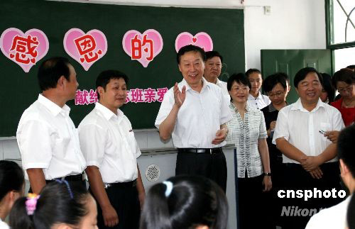 9月8日,中國(guó)第24個(gè)教師節(jié)前夕,江蘇省長(zhǎng)羅志軍親切慰問(wèn)揚(yáng)州的廣大教師和教育工作者。中新社發(fā) 崔佳明 攝