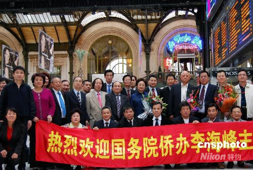 中國國務(wù)院僑辦主任李海峰在結(jié)束了法國馬賽的訪問行程后,十五日下午抵達法國首都巴黎,受到法華各界盛情歡迎。圖為法國數(shù)十個僑團負責(zé)人和代表在巴黎里昂火車站迎接李海峰主任一行。中新社發(fā) 吳衛(wèi)中 攝