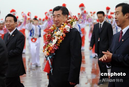 圖為中共中央政治局委員、國(guó)務(wù)院副總理回良玉戴上寧夏民眾獻(xiàn)上的花環(huán)。中新社發(fā) 廖攀 攝