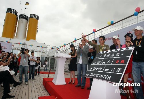 9月26日,馮小剛攜09年賀歲新片《非誠勿擾》全體主創(chuàng)人員搭載歌詩達豪華郵輪完成電影拍攝返滬,并在郵輪上舉行了《非誠勿擾》的關機儀式。中新社發(fā) 湯彥俊 攝