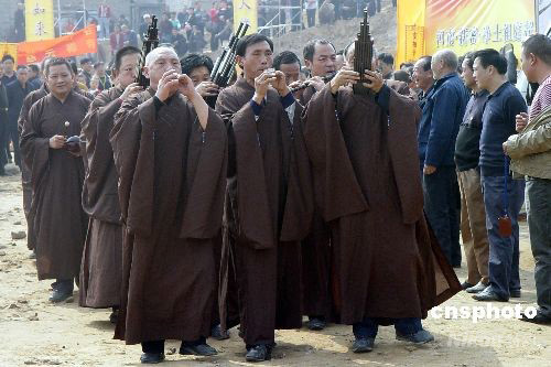 十月七日,少林寺下院--河南新密超化寺舉行大雄寶殿奠基法會,僧侶居士吹奏起“超化吹歌”,使今人又能聆聽到原汁原味的佛教梵樂。吹歌大約起源于中國四千多年前的夏商時期。中新社發(fā) 李志全 攝