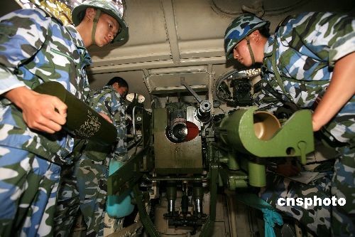 10月13日,中國(guó)海軍陸戰(zhàn)隊(duì)某旅在某地域組織自行榴彈炮實(shí)彈射擊考核。圖為官兵正在裝填炮彈。 中新社發(fā) 李唐 攝