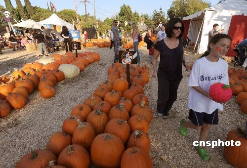 “萬圣節(jié)”將至,許多美國洛杉磯市民來到遠(yuǎn)近聞名的貝弗利山莊“骨頭先生南瓜田”,選購自己中意的南瓜,準(zhǔn)備自制南瓜燈,為即將到來的萬圣節(jié)營造節(jié)日氣氛。中新社發(fā) 張煒 攝